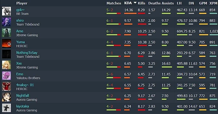 Gpk – лидер TI14 по KDA после второго игрового дня. Ame – 3-й, Nightfall и Kiyotaka – в топ-10