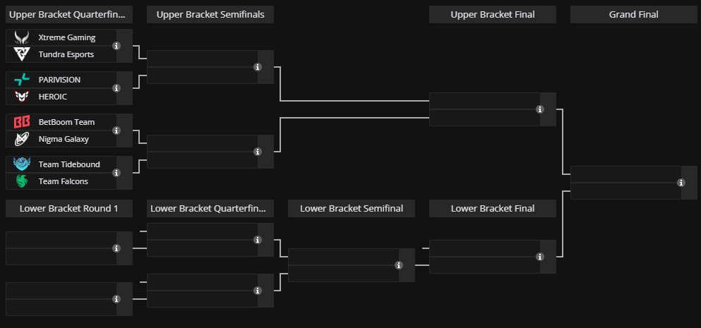Определились все пары плей-офф The International 2025. BetBoom Team в первом матче финальной стадии сыграет против Nigma, PARIVISION встретится с Heroic, Falcons снова сыграют против Tidebound, а Xtreme померяется силами с Tundra.