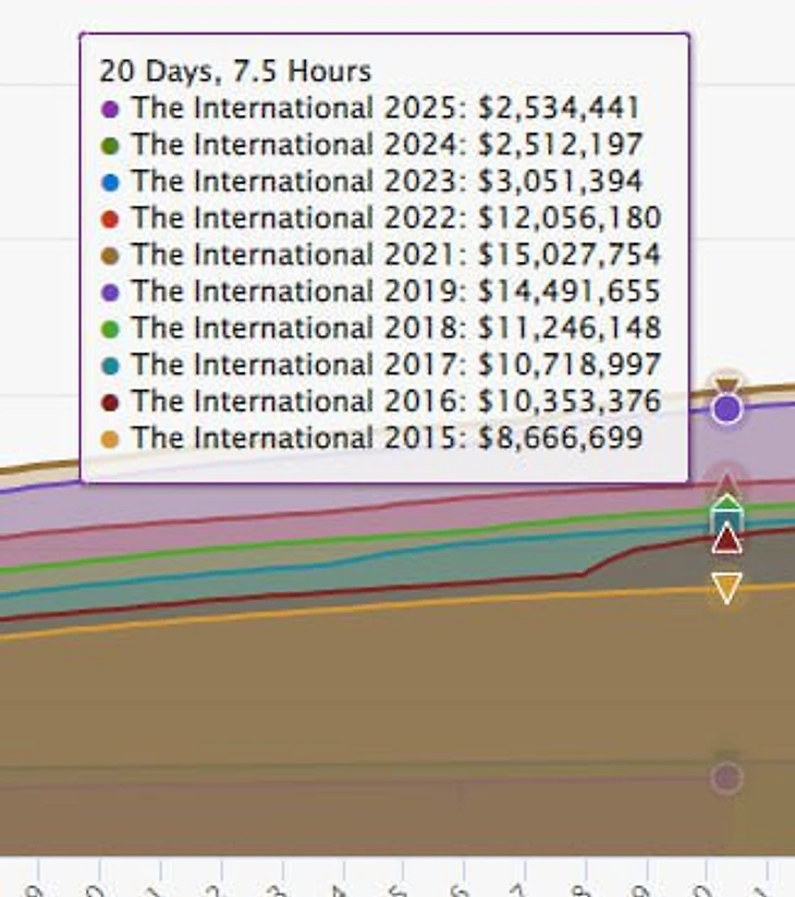В этом году в призовой фонд отчисляется 30% продаж наборов поддержки. Однако Компендиум вышел позже, чем в 2024 году, и может не собрать необходимую сумму, чтобы преодолеть итоговые показатели TI13 в 2,77 млн долларов.