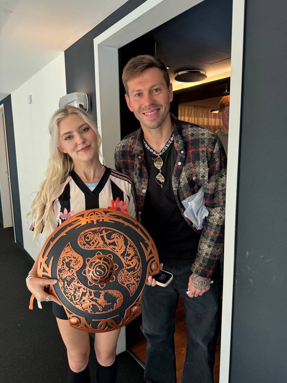 «Украшаю свой Аегис легендарными автографами! Федор любезно оставил свой ✍️», – подписала Ева Эльфи совместную фотографию с футболистом Федором Смоловым на The International 2025 в своем телеграм-канале.