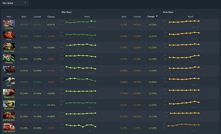 Пикрейт Снэпфаер вырос на 4 процентных пункта после TI14, Марса, СК, Медузы и Урсы – на 3