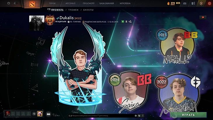 Андрей «Dukalis» Куропаткин обновил свой профиль в Доте. Игрок PARIVISION добавил в него наклейки с Егором «Nightfall» Григоренко с The International в период с 2022-й по 2025-й. TI11 он сыграл в EG, TI12 и TI13 – в составе BetBoom Team, а TI14 – в ростере Aurora.
