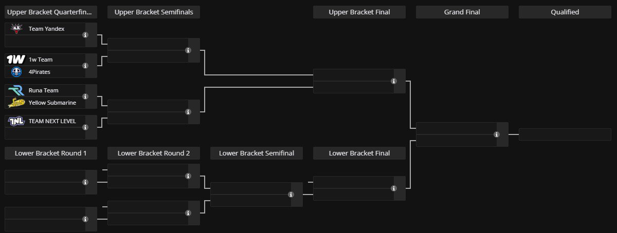 Team Yandex и Team Next Level в первом раунде квалификации сыграют против победителей открытого отбора. 1win сыграет против 4Pirates, а Yellow Submarine встретится с Runa Team. На слоты в закрытой квалификации претендуют L1ga и команда Акбара «SoNNeikO» Бутаева.