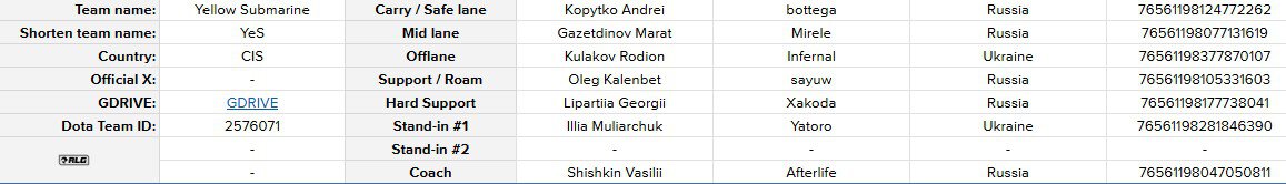 Yatoro указан заменой в Yellow Submarine. Он начинал карьеру в команде 5 лет назад