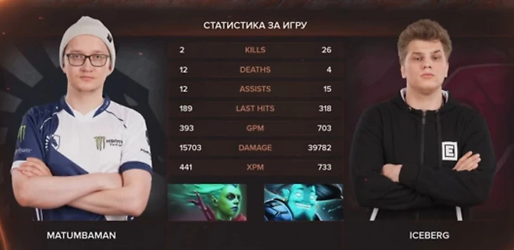 Показываю 1 скрин. Посмотри, сколько киллов и смертей у меня. Игра шла 40 минут. Я ###### [сделал] на Шторме против Миракла на Антимаге 26 киллов. Достаточно?» – спросил у подписчика Богдан «Iceberg» Василенко.