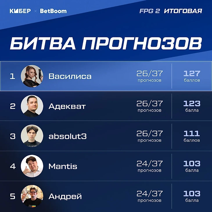 Vasilisa выиграла «Битву прогнозов» от Кибера и BetBoom