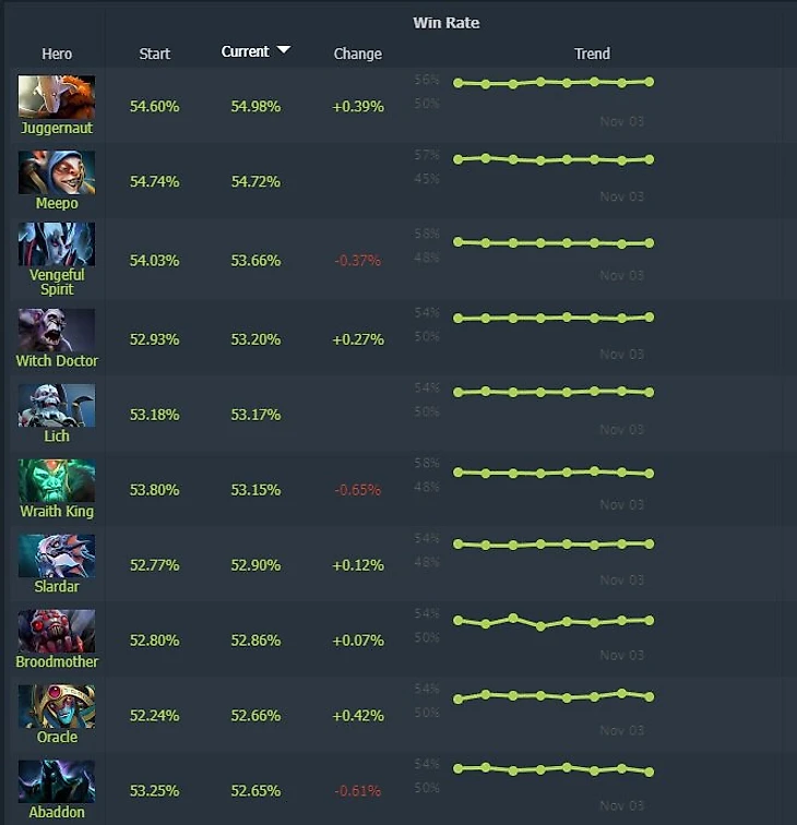 Согласно Dotabuff, в топ-5 героев по доле побед в Доте входят: