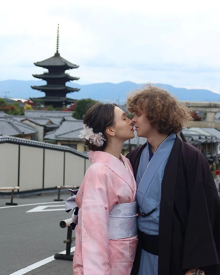 Антон «Dyrachyo» Шкредов и Евгения «Sony9sha» Елизарова побывали в Киото. Пара сфотографировалась в японских кимоно.