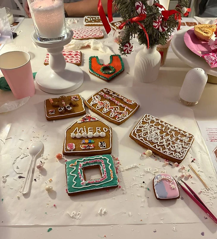 Из материалов были выбраны пряники, глазурь и разного рода посыпка, чтобы еще ближе притянуть настроение Нового года, а то со снегом в Москве пока совсем беда – не старается бородатый.