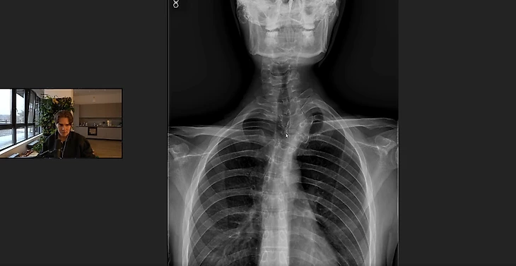 Nix показал рентгеновский снимок своего искривления позвоночника.