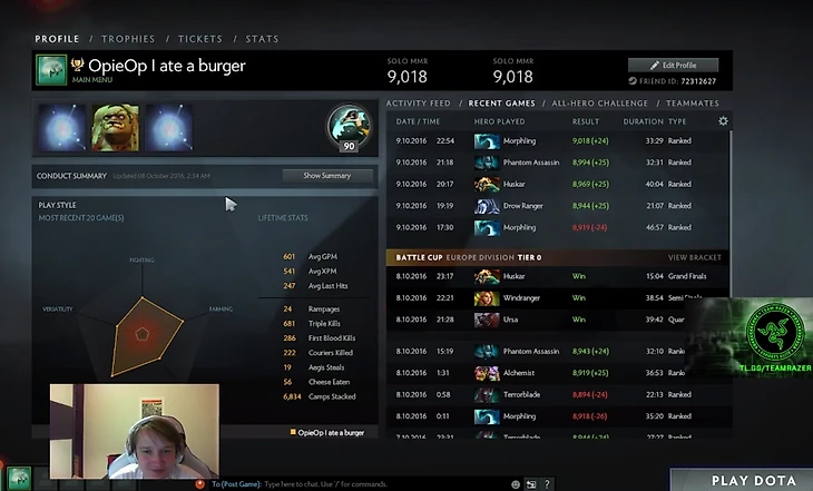 Пока все заняты обсуждением новой драмы с Team Secret, игрок Team Liquid Лассе «MATUMBAMAN» Юрпалайнен воспользовался моментом и перешагнул отметку в 9000 MMR. Путь игрока нельзя назвать простым: он уже был близок к этой цифре, имея в своем активе 8900, но серия неудач отбросила его до 8400. Но игрок нашел в себе силы и сумел покорить заветную вершину. Comeback, так сказать.