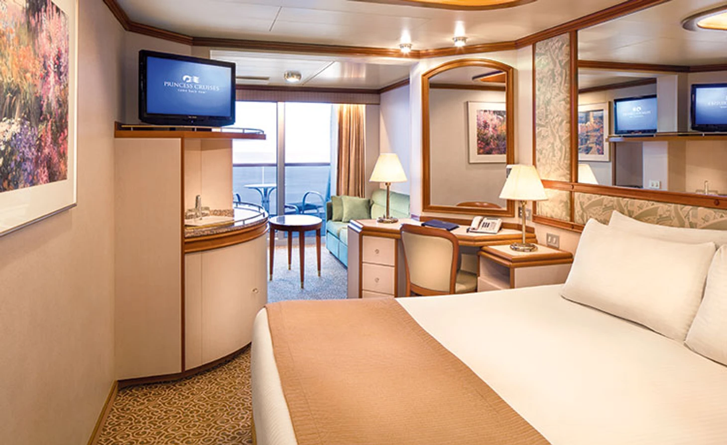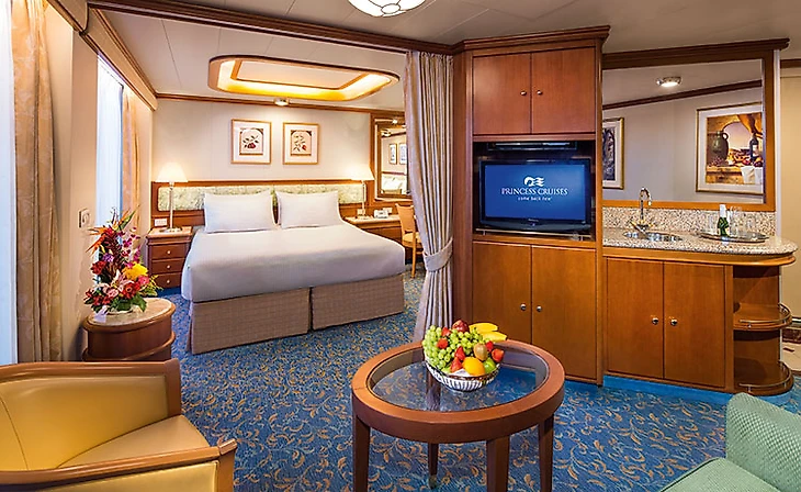 Sapphire Princess, построенная Mitsubishi Heavy Industries в 2004 году, является одним из крупнейших круизных лайнеров и рассчитан на 2670 человек.