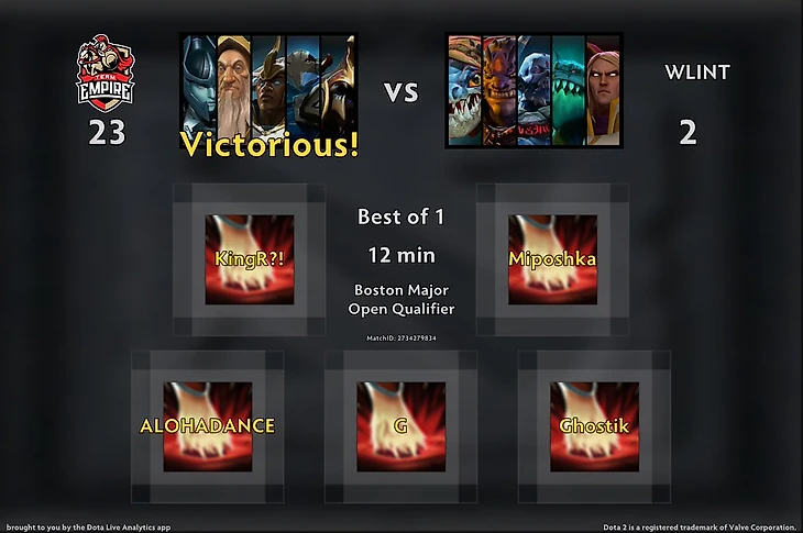 19:10 Empire одерживают победу в своем первом матче! Их соперник – Wl INT