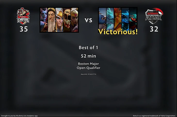 2. это имперцы задумались о переносе только когда решили поиграть в американских квалах, но по-хорошему игру так и так стоило переносить, не знаю почему об этом не думали ни имперцы, ни администрация дотапита (вот тоже дятлы, кстати).