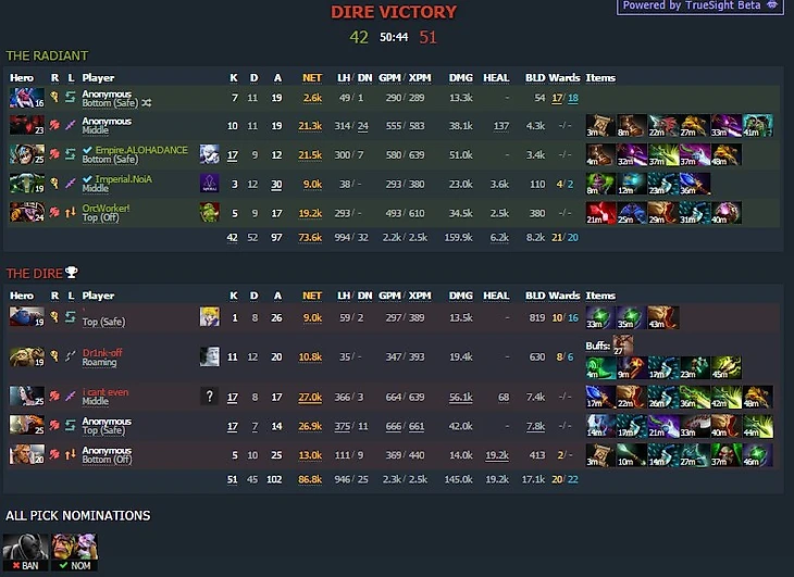 Статистика матча. GH играл на Mirana. Соперников нельзя назвать «легчайшими».