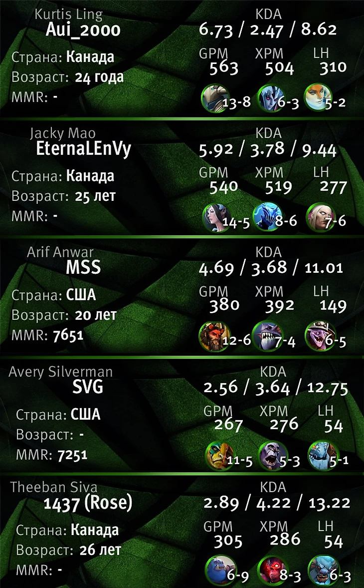 Авери «SVG» Сильверман – не самый известный в СНГ, но достаточно популярный в Америке игрок. Буквально за пару месяцев игры на профессиональной сцене он стал лучшей «четверкой» региона. И именно ему доверял подготовку к Major и The International Питер «PPD» Дагер. И, по словам одного из лучших капитанов мировой сцены, без помощи этого парня они могли и не добраться до третьей строчки чемпионата мира в этом году. SVG знаток ранней игры, чему и научил когда-то медленных Evil Geniuses.