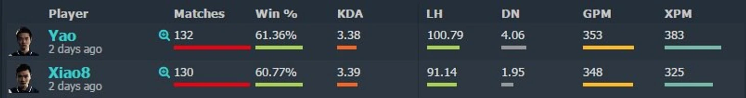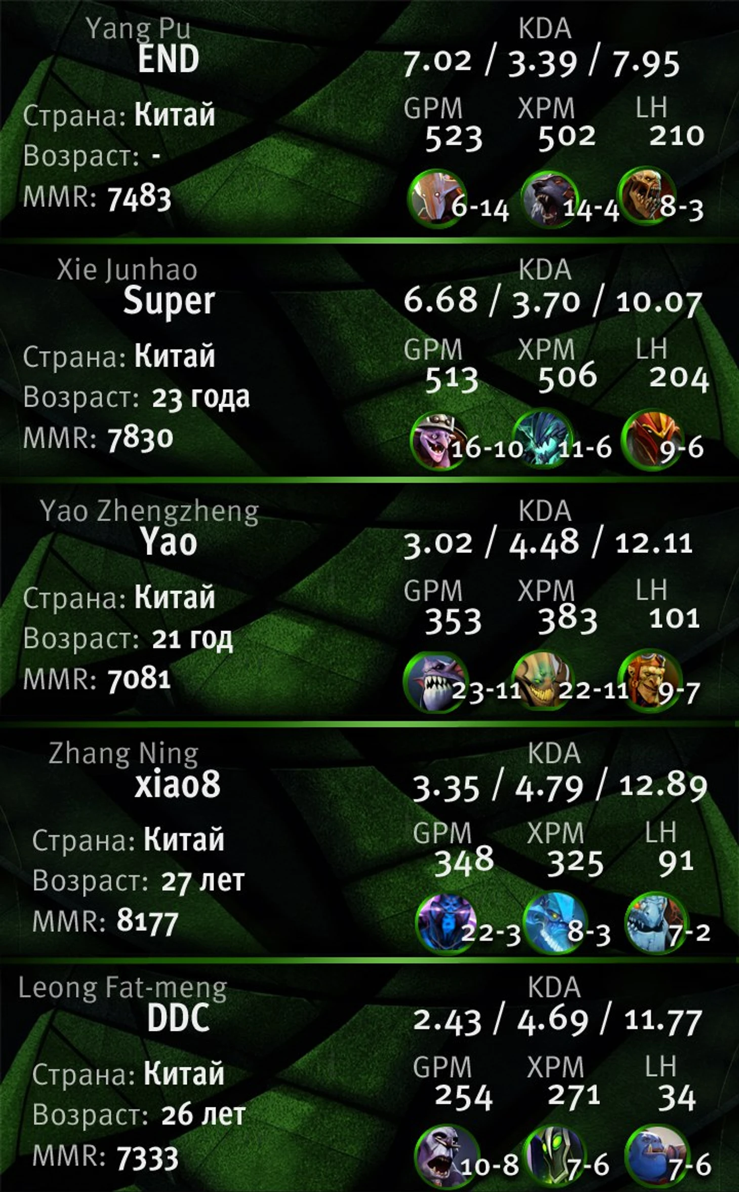 Но ключевой особенностью LGD.FY стала максимально жадная четвертая позиция. Лесная Enigma с самым высоким нетворсом, фармящий Leshrac, Mirana, забирающая нейтралов и Keeper of the Light с упором в быстрый аганим. В этой команде кор-герои могут позабыть о раннем фарме в лесу – он уже занят Xiao8. Зато к 15-20 минуте, а то и раньше, команда получает сразу 4 боеспособных персонажей, троим из которых обеспечил легкую жизнь постоянно перемещающийся LPC. Xiao8 на позиции саппорта по GPM и XPM практически догоняет хардлайнера, а по показателю KDA даже выходит вперед.