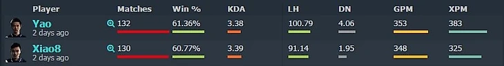 Но нельзя сказать, что за это время команда перебрала всех героев. Выработанный пул она использовала в различных стратегиях и связках. Особого внимания Xiao8 удостоились Timbersaw, Sand King и Slardar. Причем первый активно используется сразу на трех позициях. А Sand King и Slardar – самые что ни на есть сигнатурные герои для Yao, не уходящие с первых пиков, хотя xiao8 во время драфта в одном матче не повторяет больше одного-двух героев.