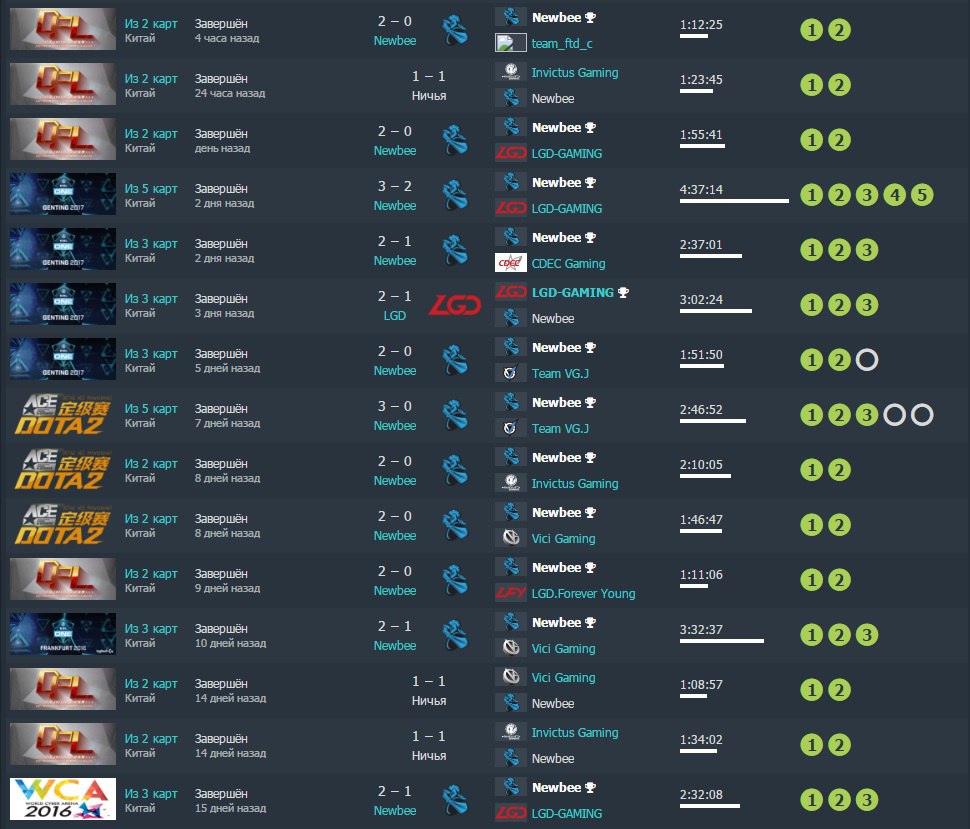 Помимо этой досадной оплошности, Newbee у себя дома держится более чем уверенно. Они выиграли квалификации к WCA и Dota Pit, причем во второй они не уступили ни одной карты, заняли второе место на Nanyang, где проиграли Wings, и взяли чемпионские титулы на двух местных турнирах. Полный джентльменский набор, украшенный общим винрейтом в более чем 70% при сотне с лишним сыгранных карт. А в этом месяце процент побед уже перевалил за 80.