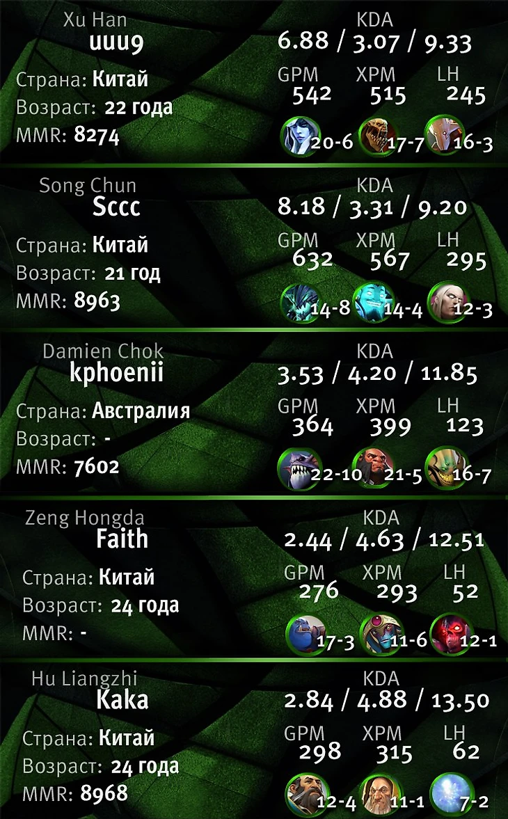 Подписание Faith очень упростило жизнь не только Kaka, но и всей команды. Игрок идеально заходит в пики за счет своей гибкости в пуле и огромного опыта. В отличие от ChuaN, пул Faith более ровный и сбалансированный. Он может отыгрывать как на «няньках», так и на более агрессивных героях. ChuaN был хорош, но он всегда выступал на героях с сильным соло-потениалом, вроде Lion или Enchantress.