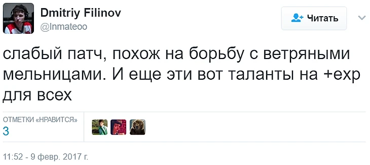 Он же иронизирует над Штормом, которому добавили аж 25 единиц здоровья на 15-м уровне и одну единицу брони на 20-м.