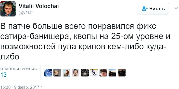 «Я не помнил, что в доте есть артефакт Heaven’s Halberd, пока не прочитал этот патч. Есть ли в игре итем хуже? Наверное, после нового баффа появится. (Алебарде подняли шанс замедлить соперника с 24% до 35%, откат Disarm снизили с 30 до 22 секунд)