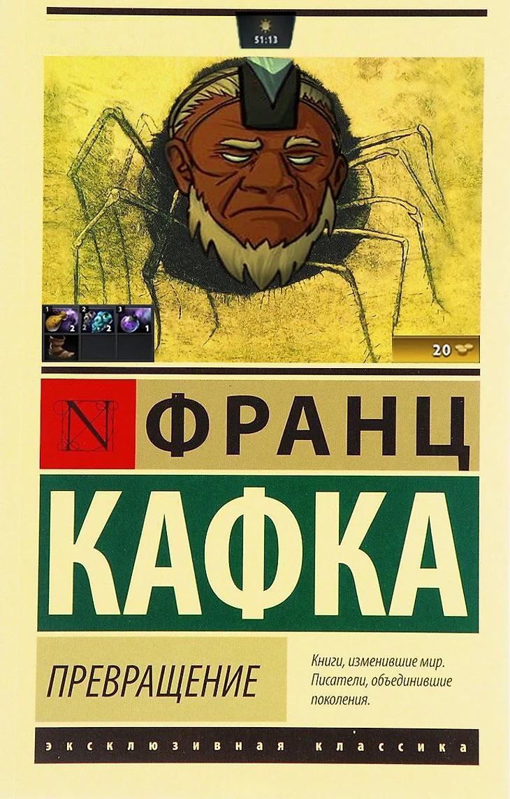 Дота-сообщество спорит о важности литературы.Все началось со скептического поста Ярослава «NS» Кузнецова о том, что художественная литература переоценена. На сторону литературы встал комментатор «Матч ТВ» Павел Занозин, заметив, что книги развивают остроту ума, учат сравнивать и анализировать. Но действительно бомбанули слова ведущего студии RuHUB Ивана «Faker» Демкина.Чтение классической литературы – занятие не из простых. Если вы погрязли в доте, но хотите знать, о чем писали классики – эта подборка поможет вам быстро войти в курс дела без непонятной «писанины на бумаги».Хардлейн-друид, с рождения пребывающий под ультом Сайленсера, топит своего медведя по приказу тян.Бедный еврейский саппорт просыпается под эффектом Хекса и мучительно пытается осознать свое состояние.Токсичные дотеры с 1к ММР пытаются выбраться из лоу-приора на ру-сервере, но ругаются, фидят и опускаются все глубже.Армянин-гирокоптер никак не может покинуть матч из-за бага в клиенте.Несколько поколений дотеров с одинаковыми никами пытаются достичь 9к ММР, но в итоге обрушивают сервер.Бедный саппорт стилит золото за фраг, но его мучает совесть, и он добровольно отправляется в «таверну».После нелепых обвинений в стримснайпинге, керри ливает из катки, чтобы поиграть в The Sims со своей тян.Саппорт пятой позиции всю игру фармит на Мантию, но курьера, который ее нес, убивают. Саппорт идет фидить.В оформлении поста использованы обложки книг издательств «АСТ» и «ЭКСМО» («Шинель»).