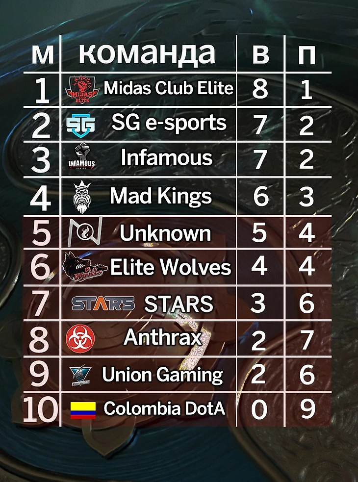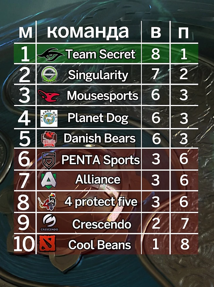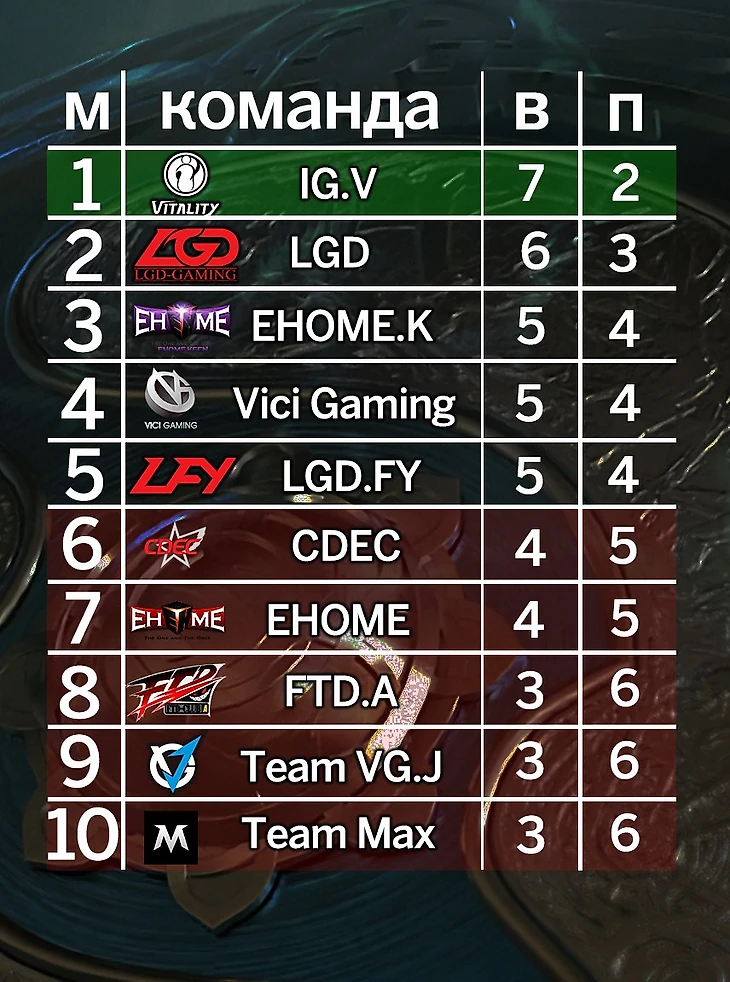 Коллектив, занявший 1 место по итогам групповой стадии, попадает на The International 7