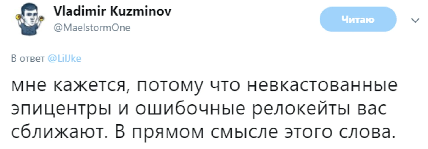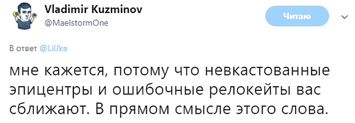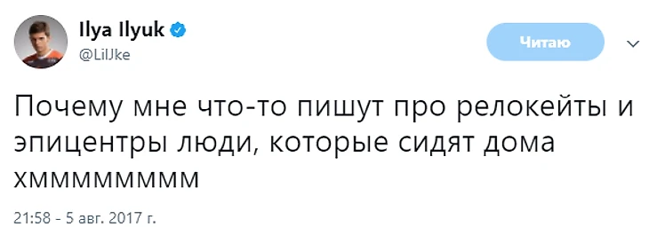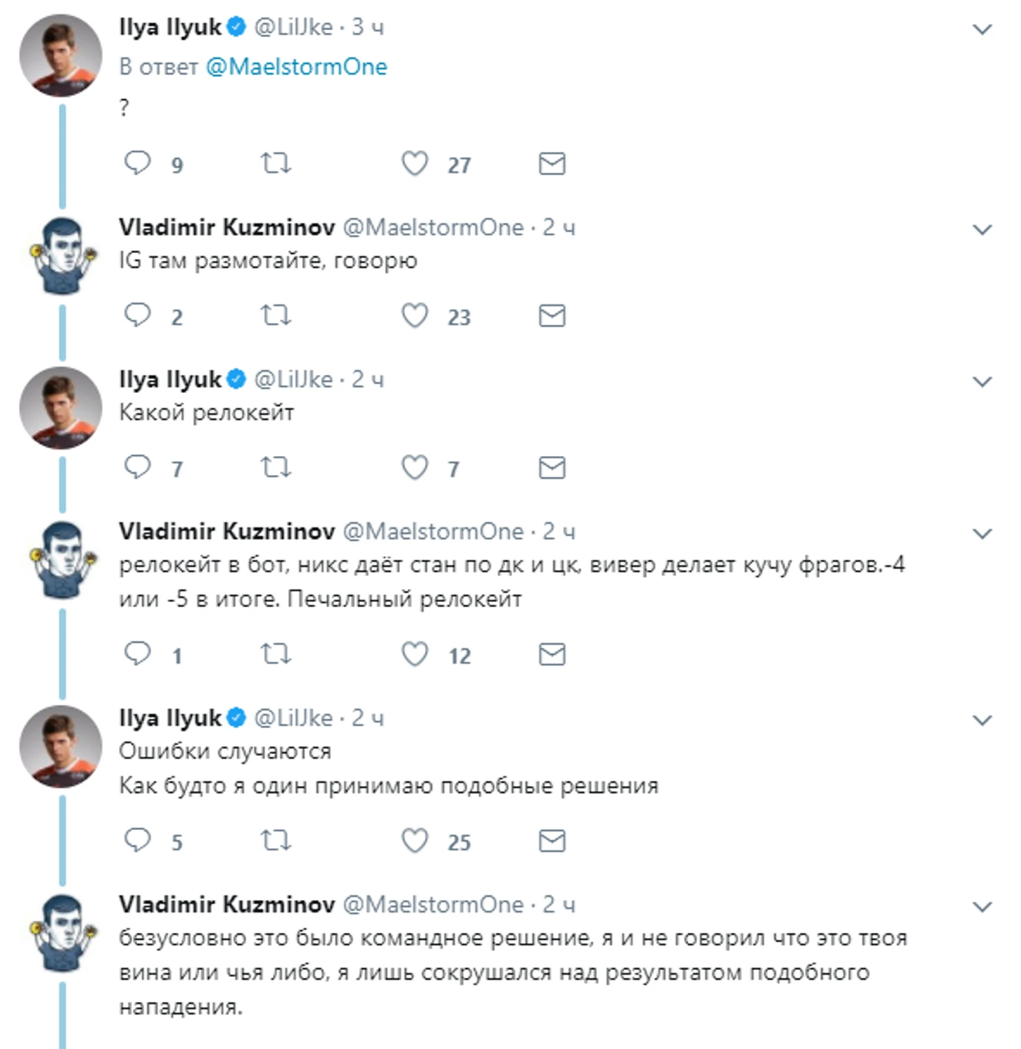 Такое мало кому удавалось.Комментатор студии RuHUB Владимир «Maelstorm» Кузьминов был настолько раздосадован неудачным релокейтом Ильи «Lil» Ильюка в игре против Newbee, что написал об этом в твиттере.Лил не смог оставить твит без внимания.Лил вспомнил, что последнее слово всегда за ним.Но не тут-то было.Фейл Лила в игре против LGD.FY