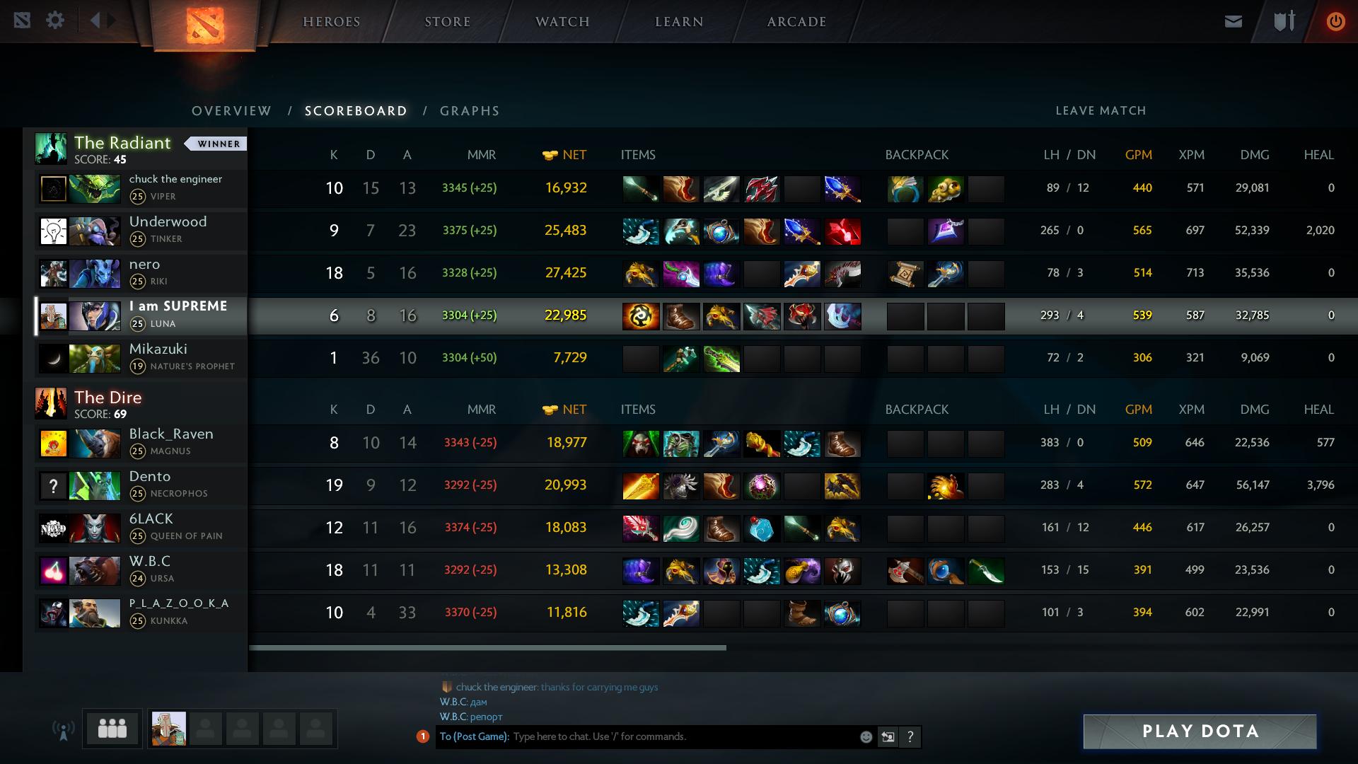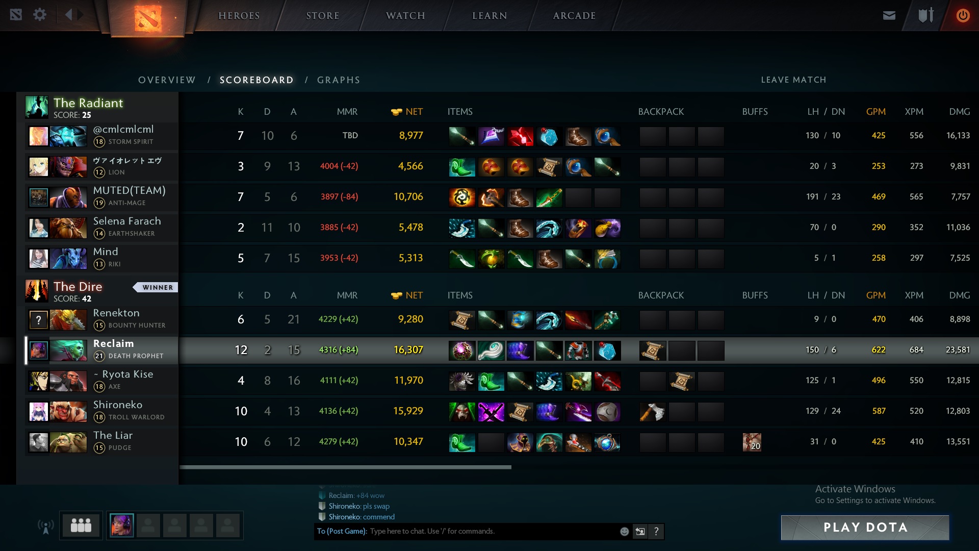Парень на Death Prophet тащил всю игру и получил аж 84 MMR в награду.