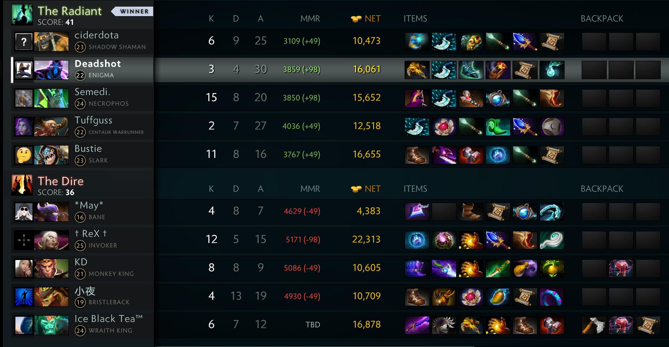 Эти игроки на Энигме и Некрофосе угадали с двойной ставкой. И уж точно никто не хотел бы оказаться на месте Инвокера из Dire – судя по статистике, только он и тащил команду.