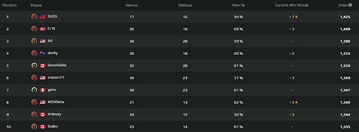 Все игроки начинают сезон с 1200 очками. За победу они получают около 15 очков рейтинга, за поражение столько же теряют. Победителем становится тот, кто наберет за сезон больше всего очков.