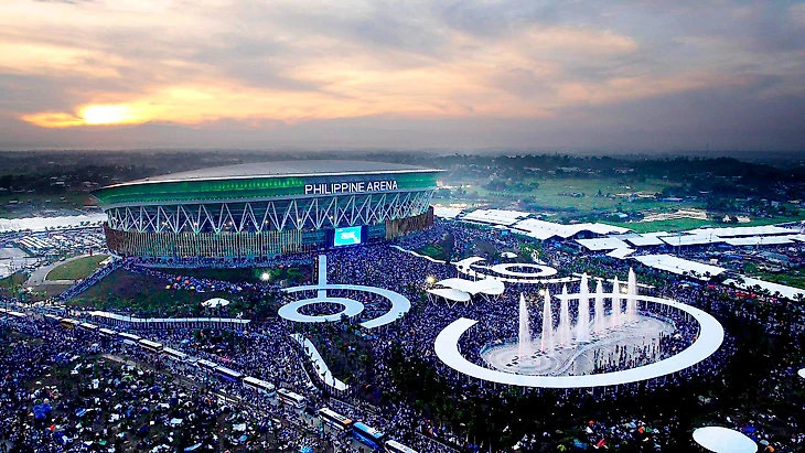 Громадина Philippine Arena вмещает 55 тысяч зрителей. Стадион открыли для посетителей в июле 2014-го, и он выглядит великолепно.Арена сразу попала в Книгу рекордов Гиннеса как самая большая крытая площадка для смешанного применения.Почему смешанного? На Philippine Arena нашлось место всему – здесь проводят баскетбольные матчи, музыкальные выступления, вечера бокса. Возможно, реванш легендарного филлипинца Мэнни Пакьяо и Джеффа Хорна состоится именно здесь.Вообще, Philippine Arena принадлежит местной Церкви Христа, поэтому на стадионе проходят еще и масштабные мессы. Очень смешанное применение.Вы уже поняли, что турнир по доте в таком месте – это просто невероятно. Даже не верится, что за какие-то несколько лет дота шагнула от тесных каморок локальных турниров на самую большую арену мира.