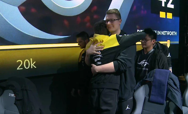 Natus Vincere проиграла Team Secret в матче за выход в плей-офф киевского StarLadder. Но противостояние в игре – не повод обделить старого товарища теплыми дружескими объятиями. Самое трогательное фото турнира so far.