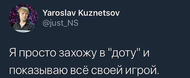 Несмотря на не лучшую форму Evil Geniuses, Virtus.pro снова не смогла победить Сумаила и компанию. Вылететь с мейджора без квалификационных очков, конечно, обидно. Но у сообщества хотя бы появился повод для шуток.Естественно, внимание обратили в основном Лила. Например, его Рубика против Тайдхантера Юниверса.Факер немного перефразировал нашумевшую шутку Ильи. Пришлось всего лишь поменять Na’Vi и Virtus.pro местами – настоящий постмодернизм.А вот НС не стал запариваться и просто процитировал его слова из интервью журналу «Maxim». Team Empire воспользовалась удобным случаем подколоть «мишек» красноречивой гифкой с подписью «Когда зовешь себя чемпионом еще до начала турнира».А вот капитан Team Spirit Фнг поддержал ребят.Как бы то ни было, пока Evil Geniuses – самая непреодолимая преграда на пути Virtus.pro.