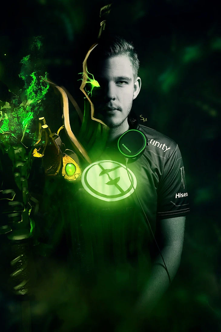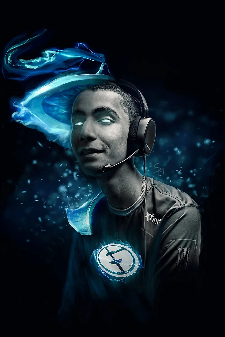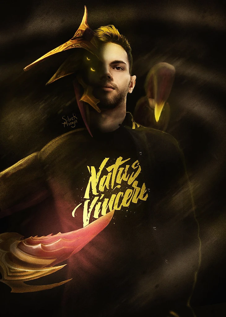 Автор этого коллажа – Ксения «SilveRMoonya» Хотенкова. Она создает подобные шедевры уже довольно давно, и игроки их высоко оценивают: «Изначально толчком к такому творчеству были, конечно, лайки со стороны игроков Evil Geniuses и Team Secret. Артур Бабаев как-то написал мне “nice”. А первым игроком, который сказал мне лично «спасибо» и назвал «лучшим художником», был Ace».