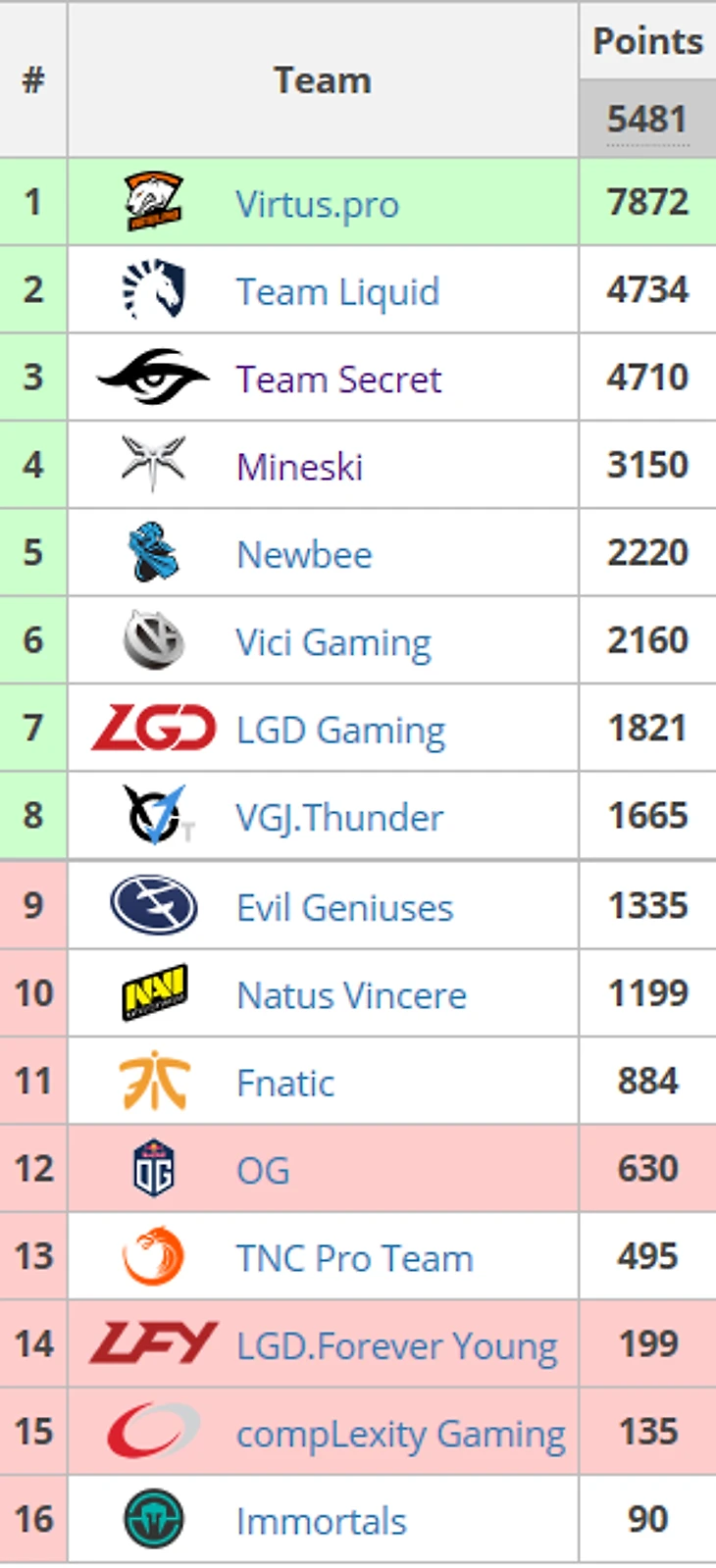 Если болельщики из СНГ могут найти утешение в другой команде, Virtus.pro, то для региона Северной Америки настали тяжелые времена. Нет ни одной американской команды, которая может быть уверена в прямом инвайте на The International 2018. Вот как сейчас выглядит рейтинг: