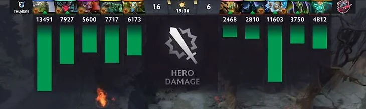 Если таким пиком игроки Flytomoon хотели удивить соперника, то им это совершенно не удалось. Даже Puppey берет Короля на турнирах только в качестве саппорта. Yang полностью переиграл Сайлента на линии и вынудил его уйти в лес уже в первые десять минут. После фрифарма на линии Tidehunter смог рано собрать Pipe и в командных драках впитывал большую часть магического урона от Зевса.