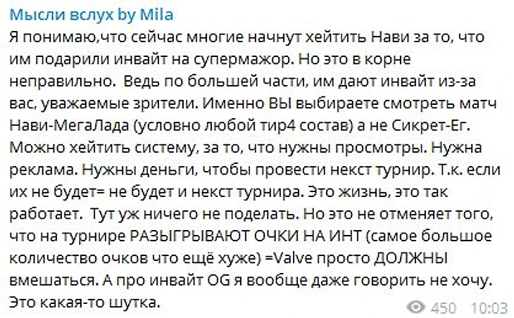 Mila считает, что Na’Vi получили приглашение из-за популярности.