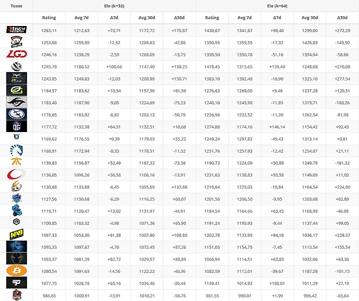 Показатель, на котором мы будем основываться, – рейтинг Эло, данные будем брать с сайта datdota.com. Для тех, кто не в курсе, что такое рейтинг Эло и зачем он нужен: вот этот парень еще два года назад пытался простым языком объяснить все вот здесь, можете почитать у него вводную часть. Или воспользуйтесь Гуглом, пока все еще можете.
