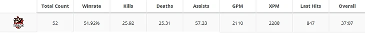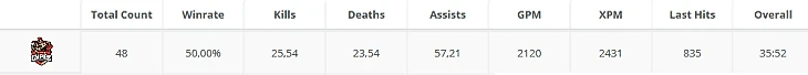 При том же количестве сыгранных матчей KDA Айрата вырос на две единицы, средний GPM – больше чем на полсотни, урон по героям – почти на 10 тысяч, а по зданиям – на 2,5.