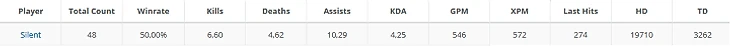 После ухода Айрата заметных сдвигов в статистике «Империи» не произошло. Рост процента побед на 1,92 выглядит статистической погрешностью, убийства, смерти, ассисты и GPM не изменились. «Имперцы» верят в свою игровую модель и меняют только исполнителей на первой позиции, видя в них главную причину своих неудач. Nix в самый разгар очередного решаффла в «Империи» рассказывал, как непривычно ему отыгрывать роль саппорта первой позиции, когда команда полностью играет на ФНа. Игра на Ростислава, безусловно, может давать результат, но речь сейчас не о нем и не о Team Empire. Речь о Сайленте и его новой команде.