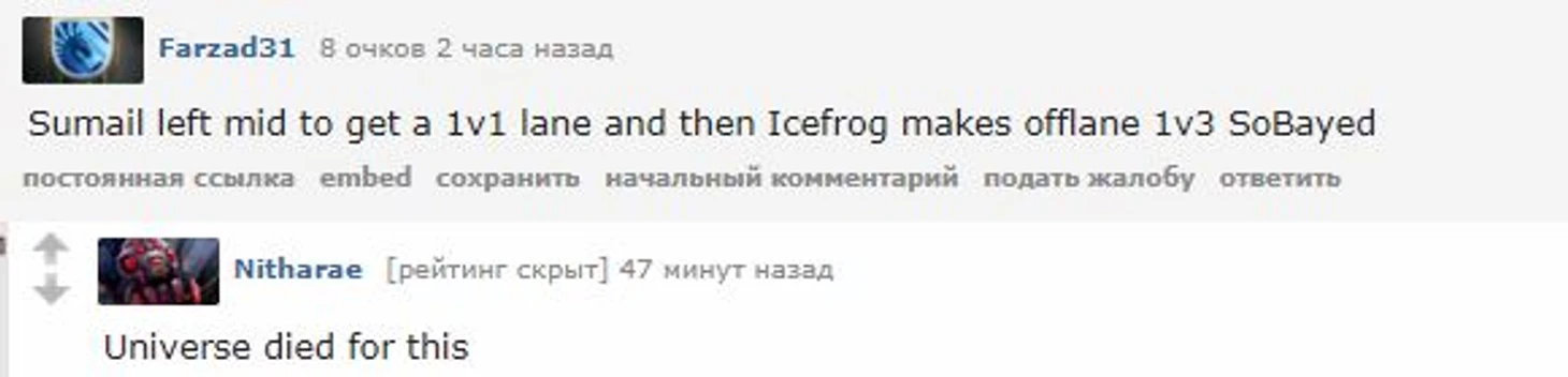 «Сумаил ушел с мида, чтобы стоять 1v1 на линии, а теперь IceFrog сделал так, чтобы на оффлейне было 1v3».