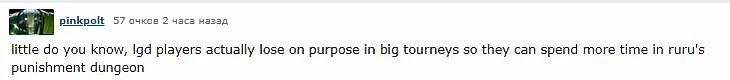 «Ходят слухи, что игроки LGD проигрывали специально, чтобы больше времени провести в БДСМ-подземелье с ruru».