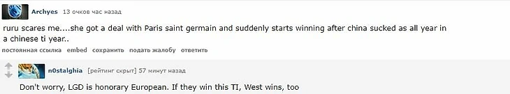 «Не переживай, LGD теперь европейская команда. Если она выиграет TI, то Запад тоже победит».