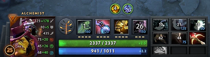 – Yes. I can tell ya, this item build, and these talents, if you want to learn how to play Alchemist this patch – you do this. Do not listen to the panel, they don’t know what they’re talking about. Because the thing with Alchemist right now is: Radiance is a really strong item early game, it’s super strong, because enemies don’t have Pipe, they don’t have any way to escape the burn damage. Early game, there is no burst damage to kill Alchemist with Armlet + Radiance, he doesn’t die in first fights.