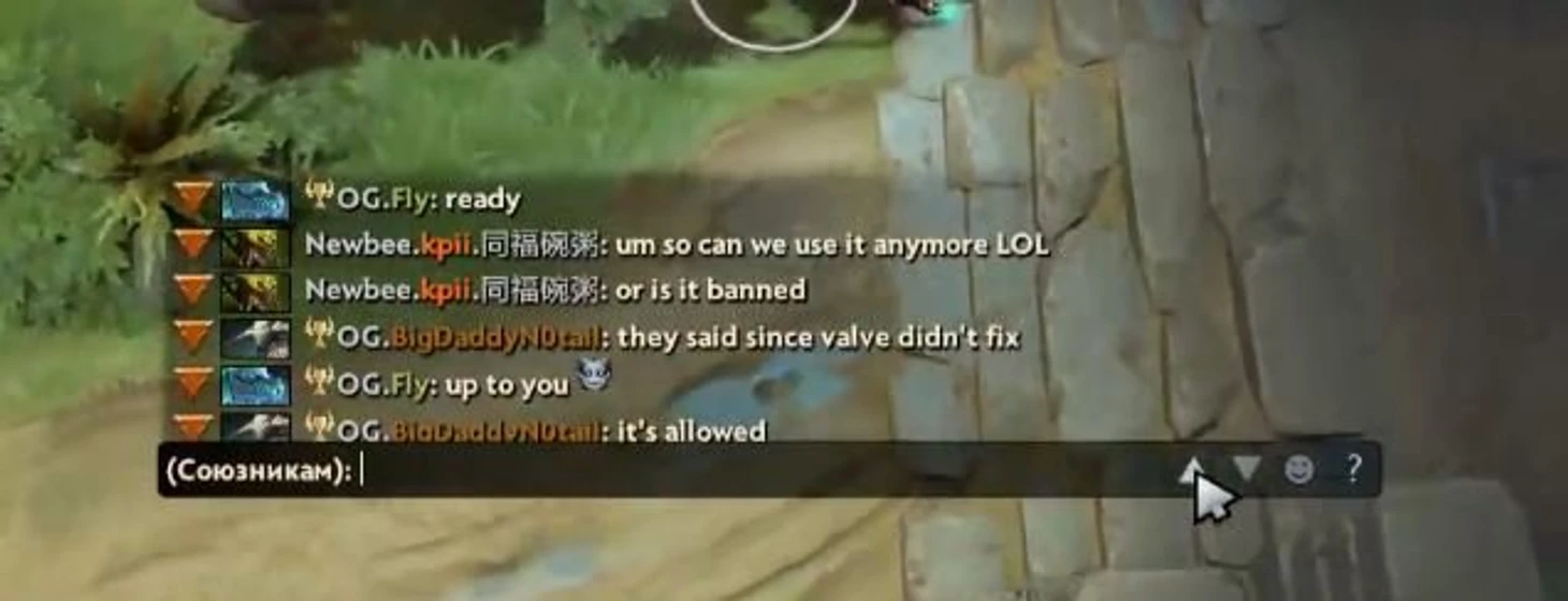 Судя по вопросу из диалога от kpii, игроки Newbee точно знали, что они делают. Представьте, что OG не останавливают игру, Moogy прибегает на нижнюю линию и помогает команде забрать героя противника. Разве это было бы честно?