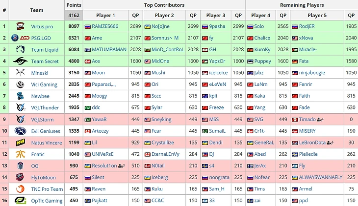 После MDL Changsha таблица претендентов на TI выглядит так:
