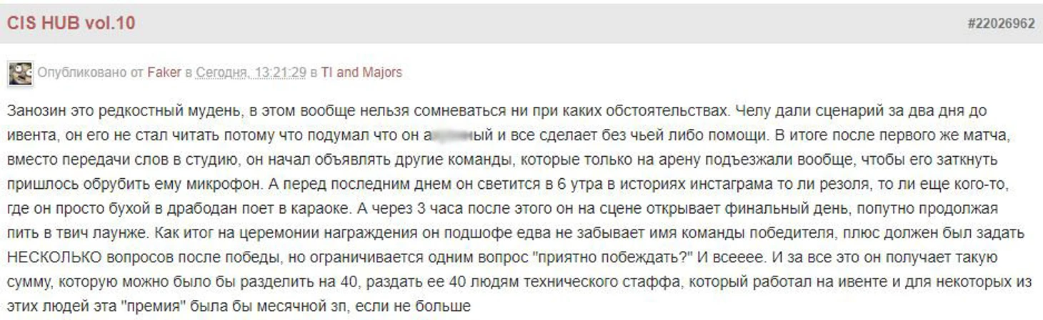 – Было и довольно часто. Меня напрягает в киберспорте, что это как большой подъезд, везде есть подъездные бабки, которые пытаются делать вид, что они все знают, пытаются кому-то насолить, что-то решить, но они никогда даже и близко не были в киберспорте. Они просто пытаются сюда проникнуть, потому что это популярно, здесь появилось много денег.