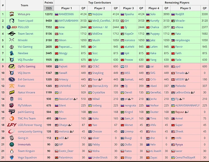 После того, как правило сезона озвучили, стало понятно, что, по сути, DPC система будет определять сильнейший регион. По итогам сезона сильнейшим регионом стала Европа с 14687 очками, второй Китай с 14499 очками, третьим стало СНГ 13140, дальше идет Азия с 4912,5, ну а хуже всех выступил Американский регион, Северная Америка 1890, Южная Америка 0. После этого возникает один вопрос. Почему Северо-Американский регион получает 3 слота, больше всех, когда он выступил хуже всех. На мой взгляд главным показателем силы в сезоне как раз и должна являться DPC таблица, на деле же мы видим, как Валв сами переписывают регламент в угоду своего мнения и своего желания, что в принципе для американских организаторов турнира не удивительно. Все мы помним инвайт ЕГ, когда они не прошли квалы на Саммит, в тот момент, когда Виртус про, по ошибки не пригласили и им пришлось играть квалы, тем самым забрав слот и возможность у какой-то СНГ команды заработать те самые очки в DPC таблицу.